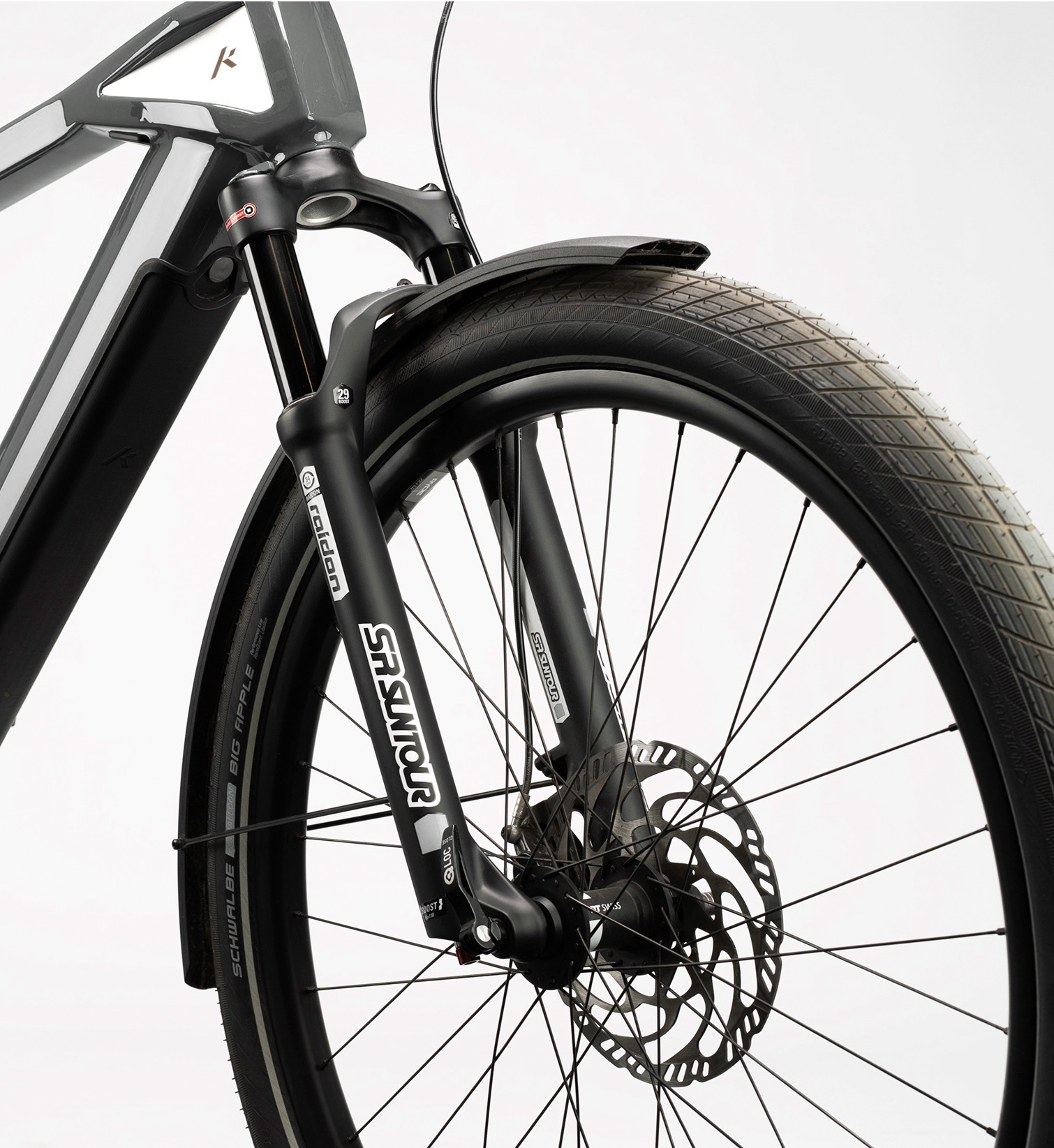 Für spürbare Dämpfung auf unebenen Wegen ist eine SR Suntour SF25-Raidon34X-Boost Federgabel mit 100 mm Federweg verbaut. Sie sorgt für Laufruhe und Sicherheit auf Kopfsteinpflaster, Schotter oder leichten Waldabschnitten. Mit Schutzblechen und Gepäckträger ausgestattet, ist das Cross Trekking auch im urbanen Alltag oder auf Reisen vollständig einsatzbereit – funktional und dennoch klar im Design.